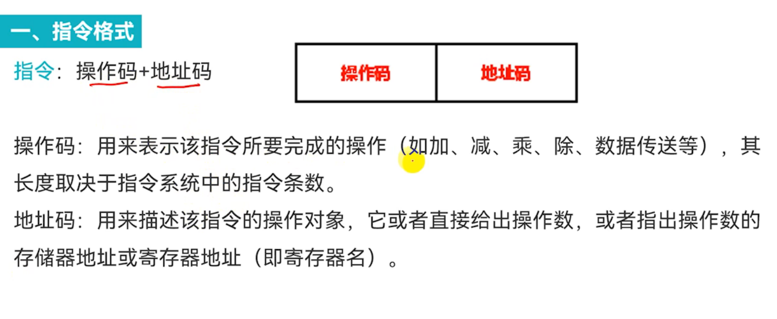指令 = 操作码 + 地址码