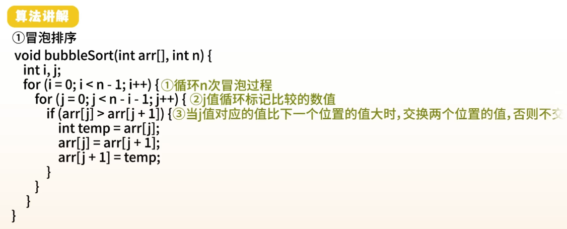 - 两两比较相邻元素,逆序则交换