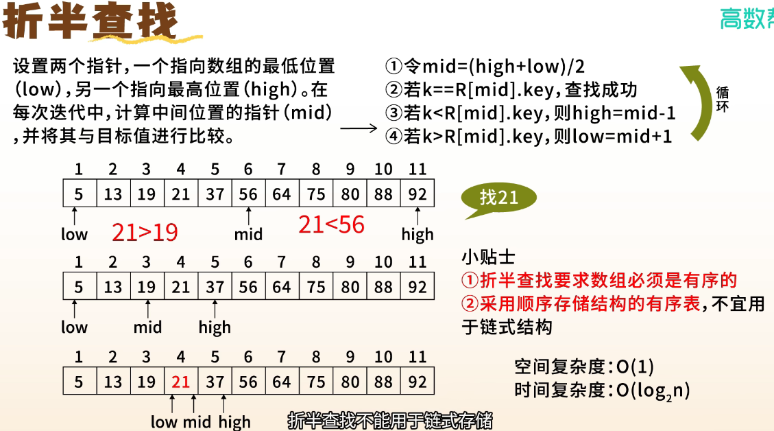 折半查找 | 有序顺序表 | ❌ | 静态为主 | |