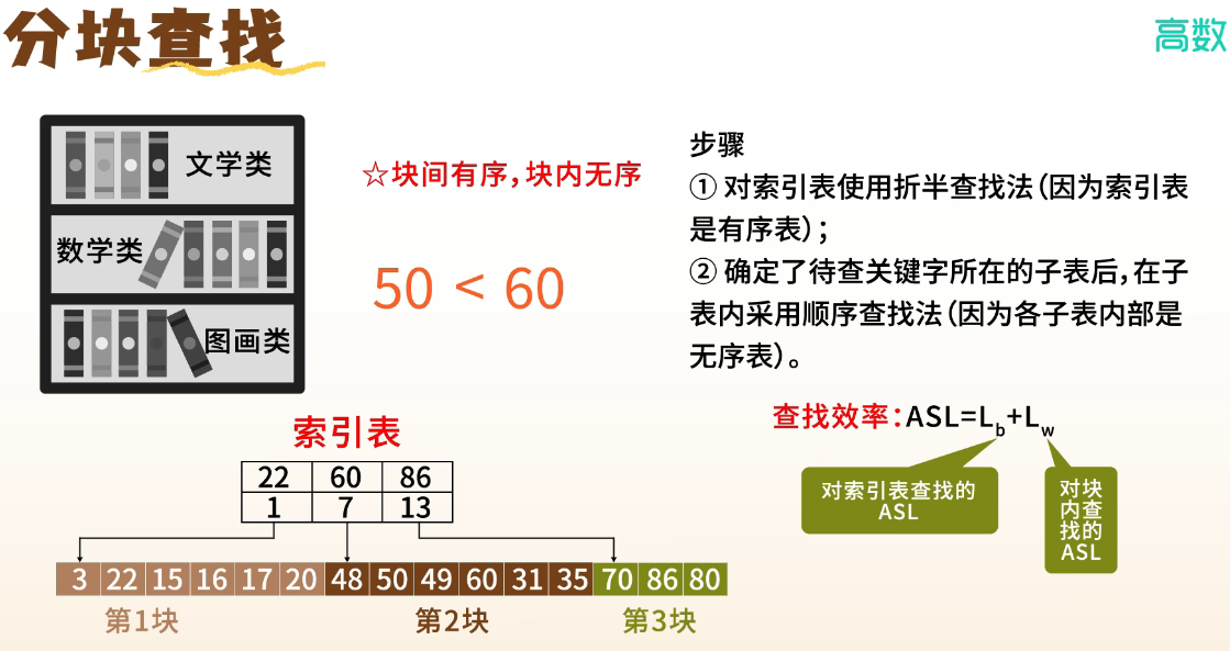 分块查找 | 顺序存储 | ✅ | 折中方案 | |