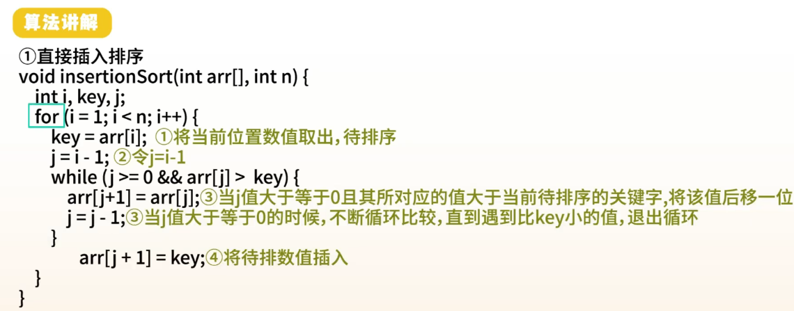 - 找到合适位置插入(后移元素腾位置)