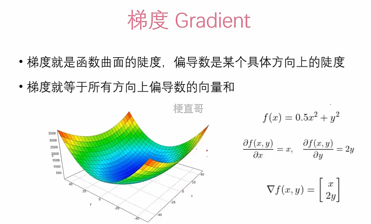 当参数为向量 时,损失函数 是一个高维曲面。梯度 是该曲面上函数值增长最快的方向。我们要做的,是沿着它的反方向更新参数: