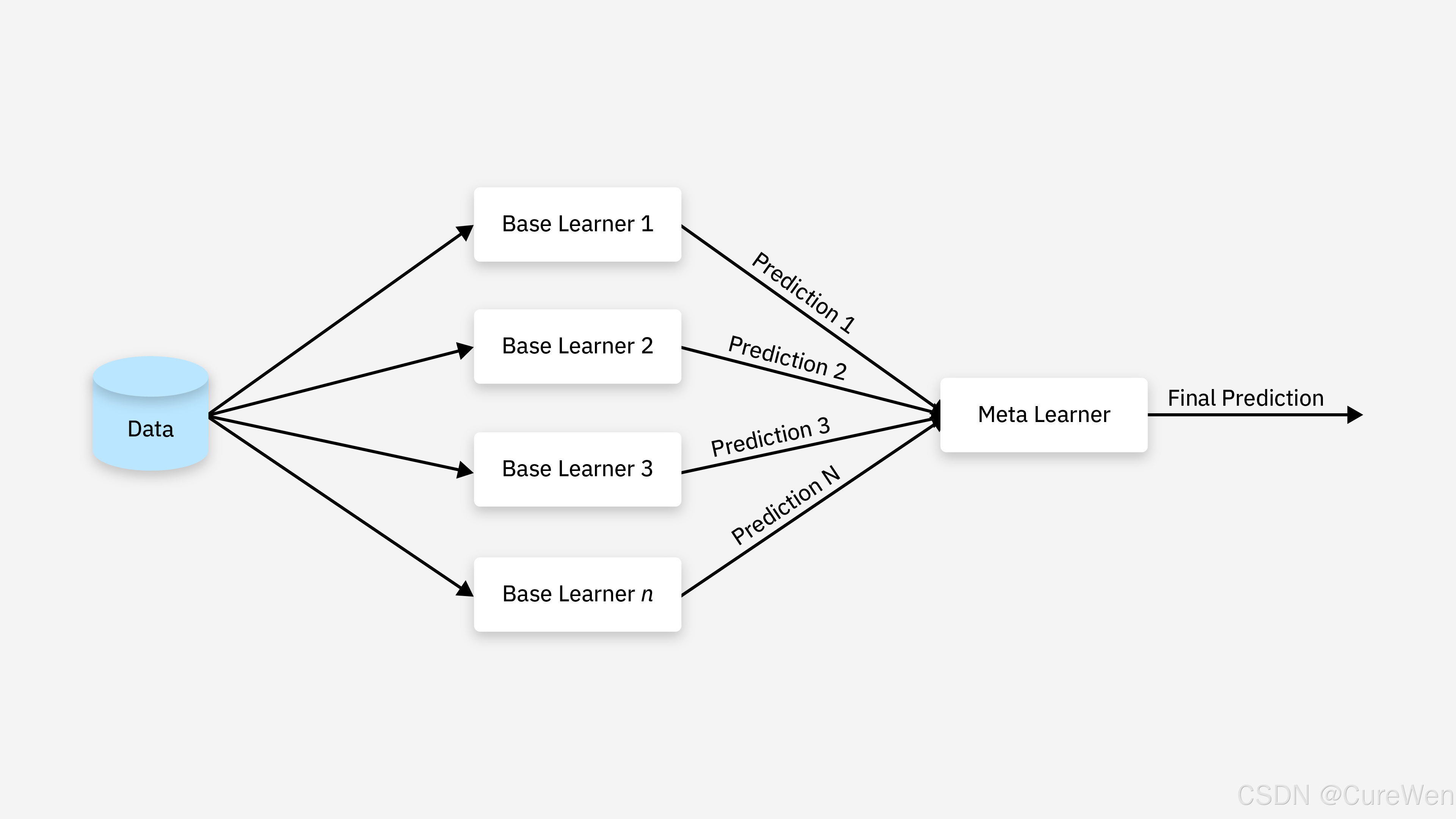 - 堆叠法(Stacking) :使用元模型(如逻辑回归)整合多个弱学习器的输出。