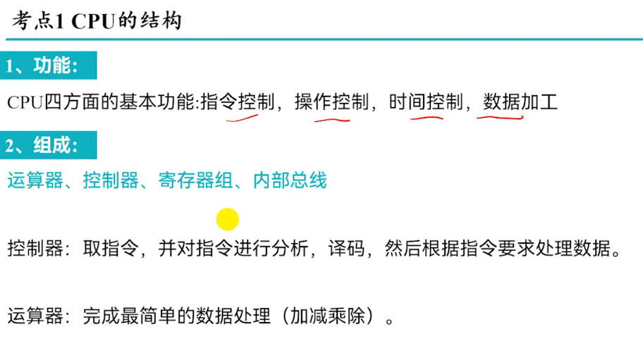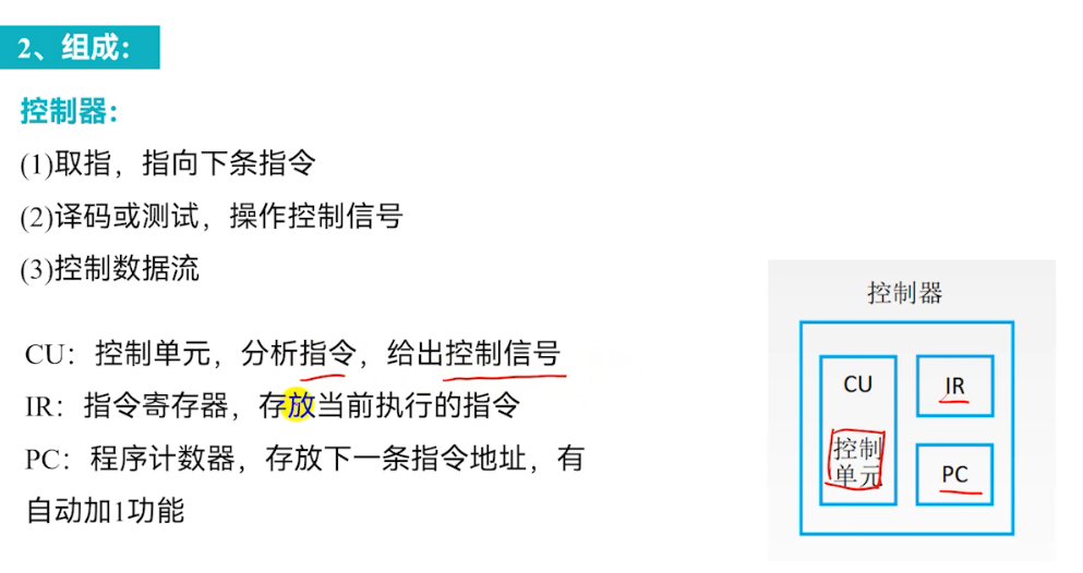 控制器是CPU的“指挥中心”,主要完成: