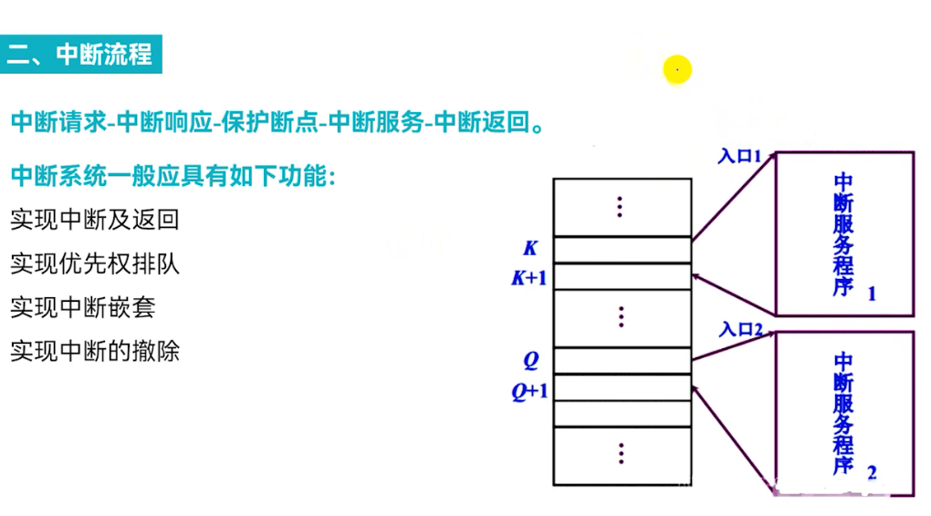 💡 注意:“中断源” ≠ “中断请求”:源是设备,请求是信号;“中断响应”发生在指令周期结束时(一般在执行周期后),且需满足:IF=1,无更高优先级中断正在处理。