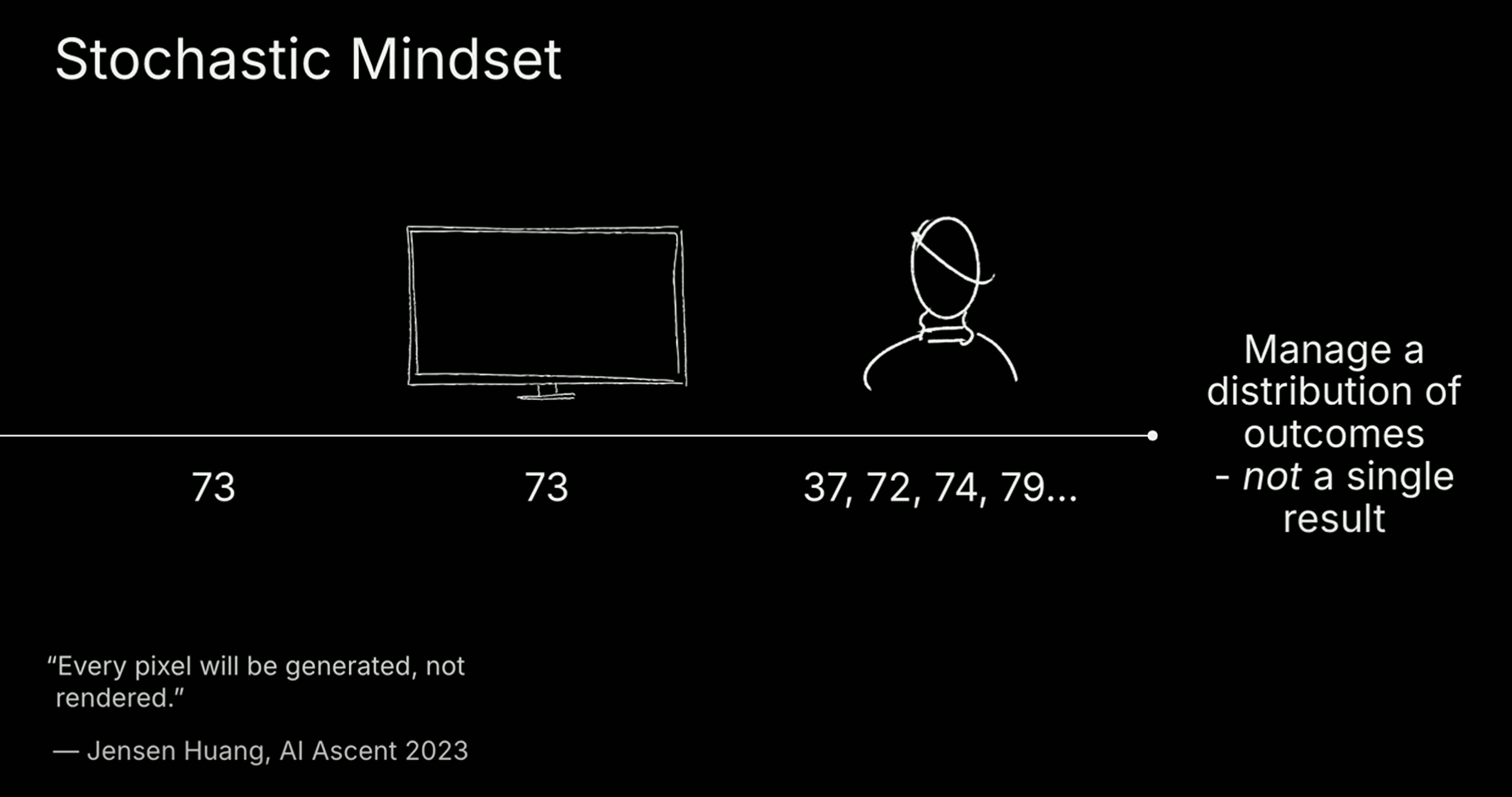 人们需要适应从确定性计算向随机性计算的思维转变,这是所谓“随机性思维”,即系统可能会做出不同响应,但整体仍然有效。个体也将从执行者变为管理者,未来大多数人将学会如何高效地指挥和协作 AI,而不是亲自完成每一项任务。这将极大提升杠杆率,但也对风险管理提出更高要求。