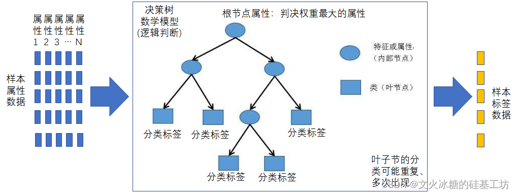 决策树是一种监督学习算法。它的内部节点是该模型的特征属性,叶节点是决策结果。对于决策树模型,最重要的三个问题是: